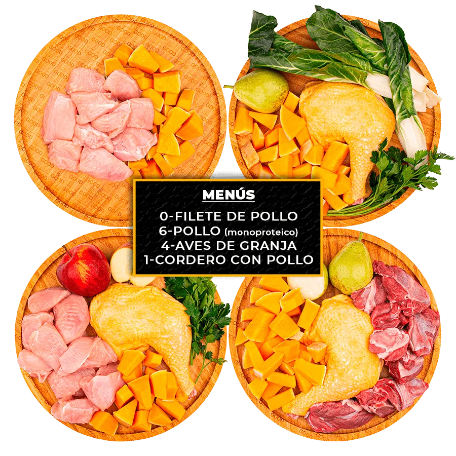En una sola caixa, trobareu 4 menús aptes per passar a la dieta natural de forma senzilla i sense complicacions.